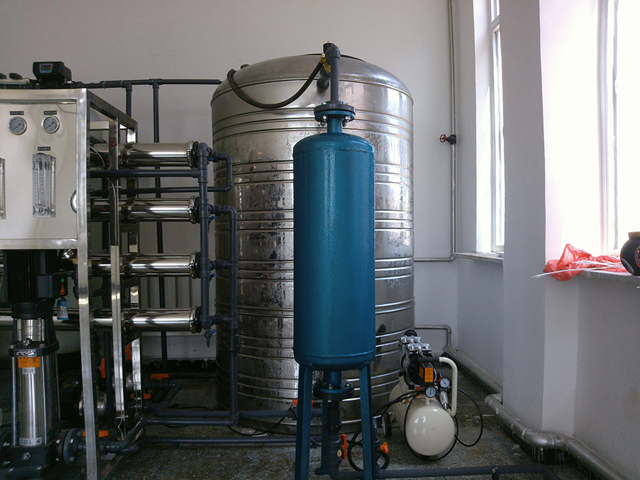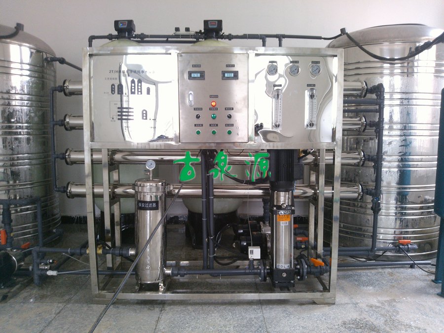 該項目現(xiàn)場位于遼寧省阜新市,原水為深井地下水,出水水質(zhì)要求達到飲用水標準,用來給學生們食堂做飯及飲用。我們給設(shè)計研制了一套產(chǎn)水量為2T/h的反滲透設(shè)備,采用了4組8040的白鋼膜殼配上8支陶氏4040的反滲透膜,產(chǎn)水量達到2T/h。在出水端,配備了2-40的南方臥式泵兩臺(一備一用),采用變頻恒壓供水系統(tǒng)進行控制,以保證用水端的水壓恒定水量充足。