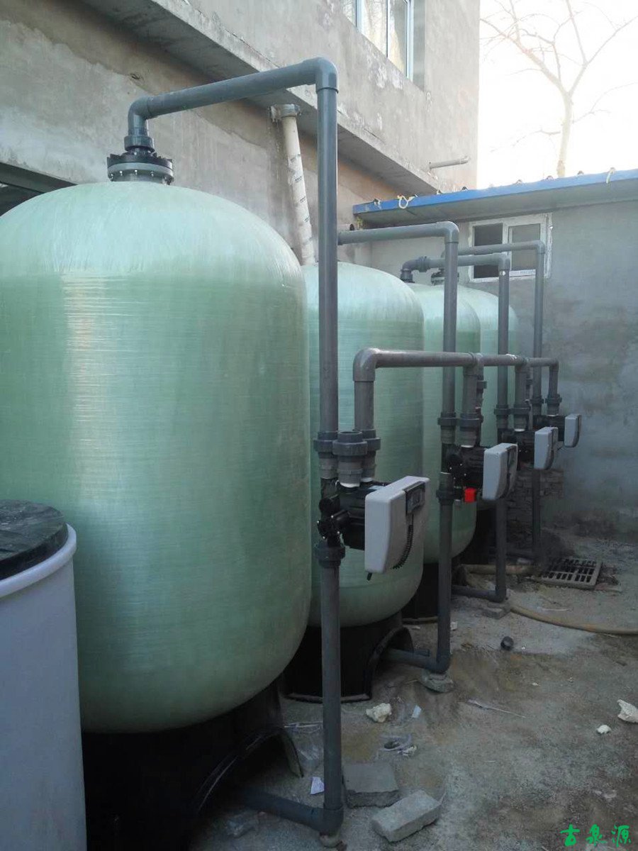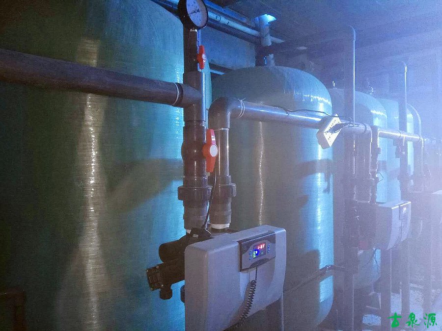 我公司為該項目分別配備φ1500、φ1200、φ1200、φ1500四個玻璃鋼過濾器,內部分別裝載錳砂、樹脂、樹脂、活性炭,后置一臺精密過濾器??梢詫⑺袘腋∥?、雜質以及鐵、錳、鈣、鎂等離子去除掉,并且去除水中異色異味,使水質達到生產用水標準。